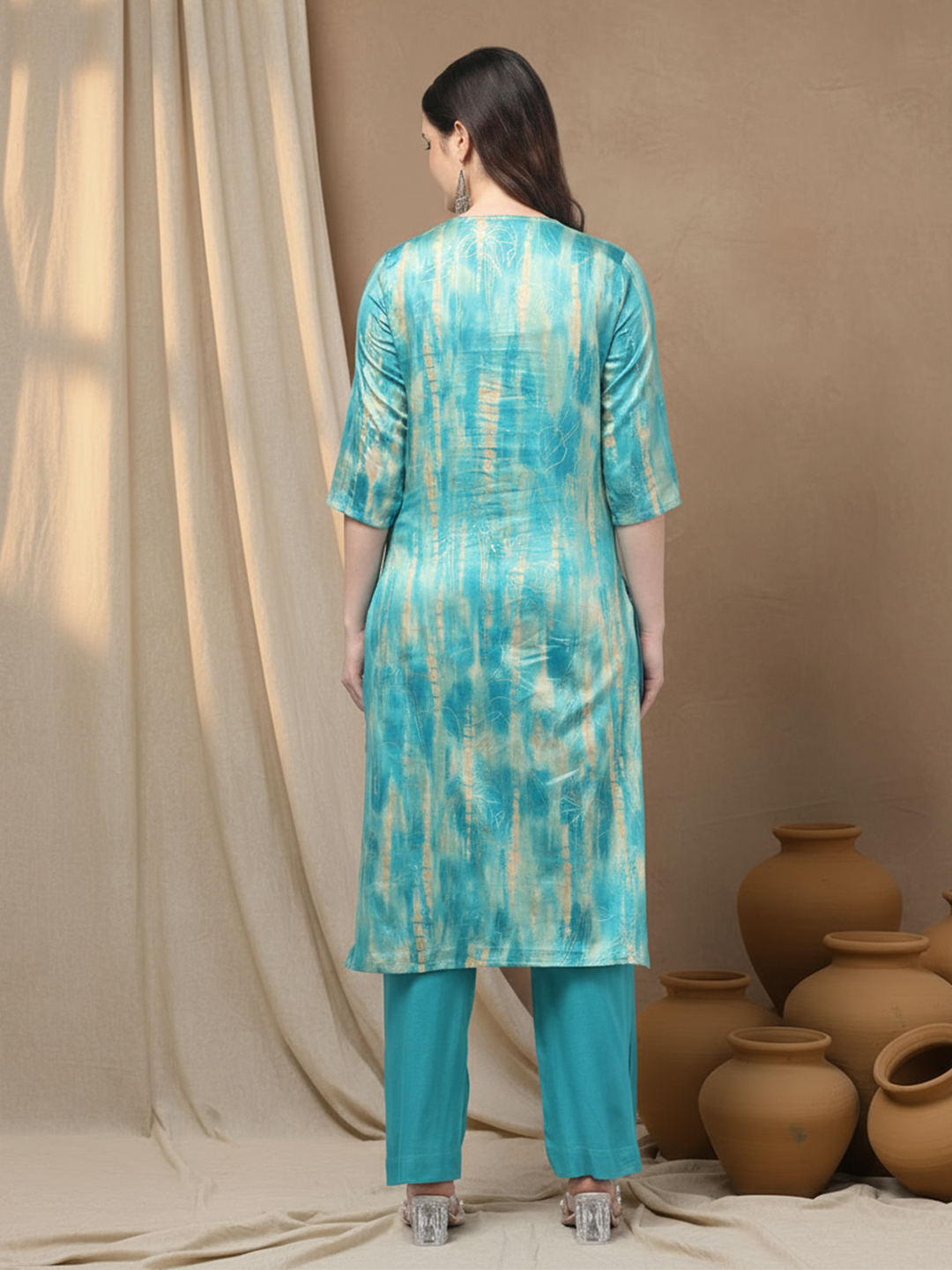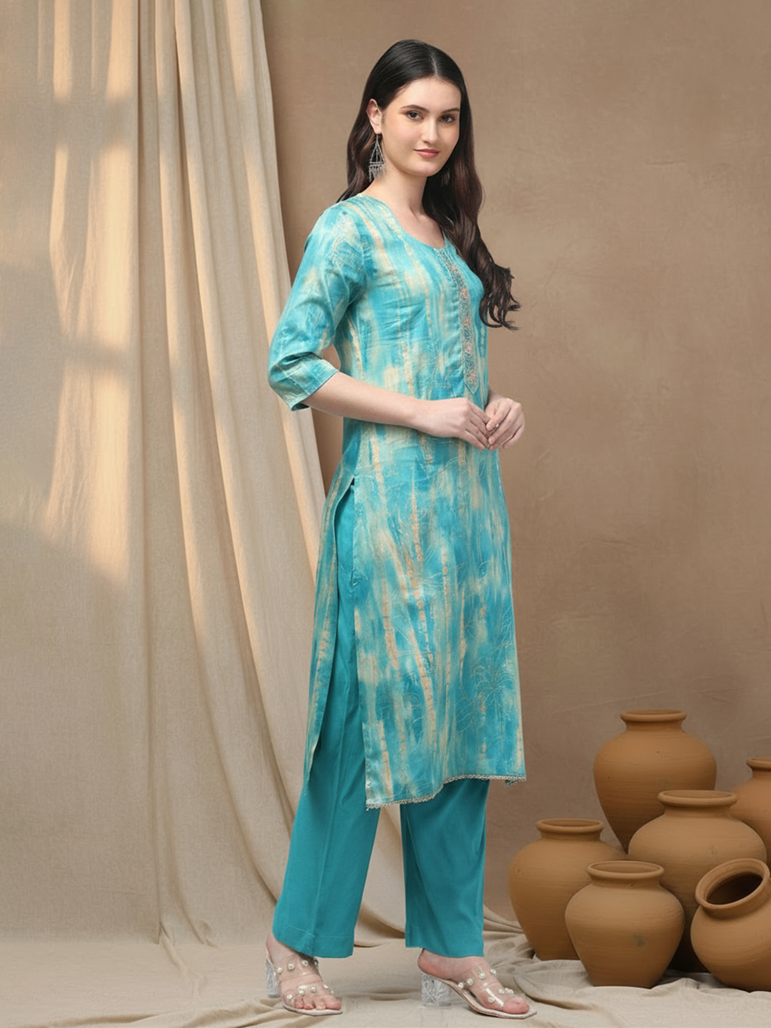 Turquoise blue printed Kurta with Palazzos with dupatta