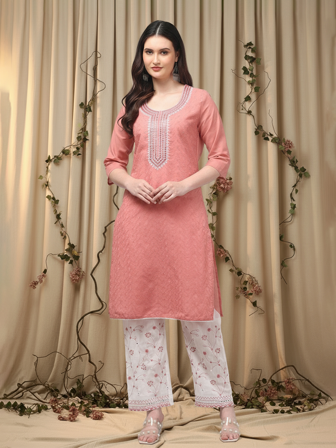 Floral – Printed – Peach Kurta